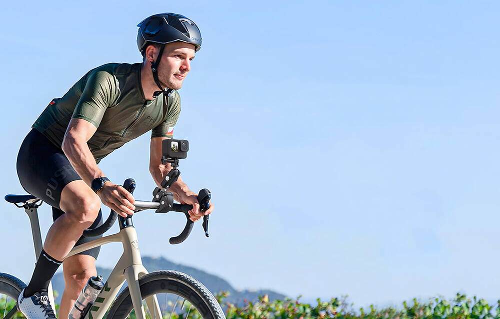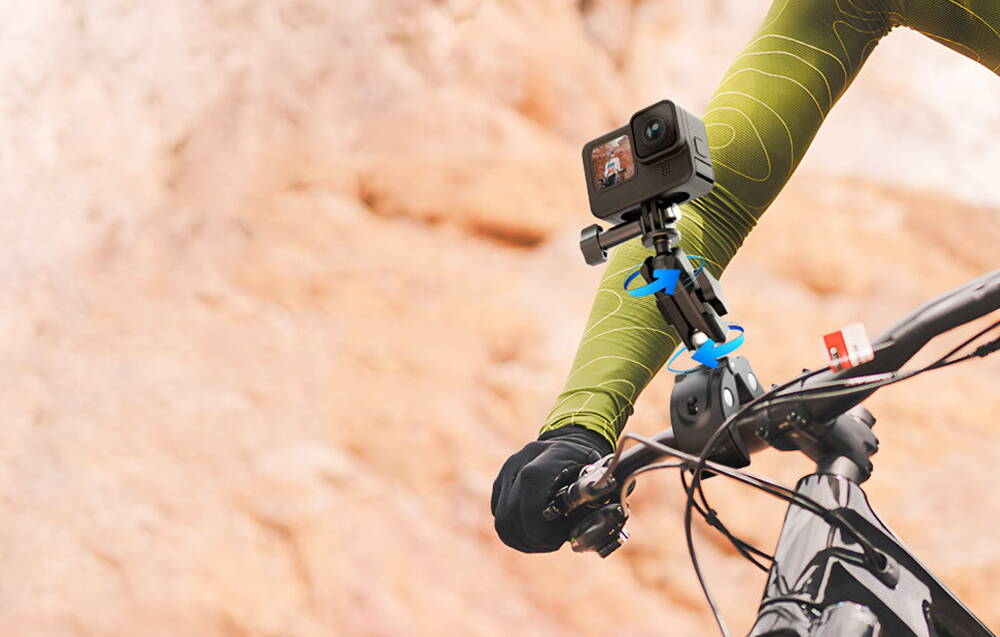 CreaÈ›i fotografii È™i mai interesante, uluitoare. Suportul GP-HBM-003 vă va permite să montaÈ›i stabil camera dvs. de sport pe ghidonul bicicletei, iar datorită celor 2 articulaÈ›ii sferice puteÈ›i înclina dispozitivul sau îl puteÈ›i roti la 360° în orice moment. PoziÈ›ionaÈ›i-l în unghiul dorit È™i înregistraÈ›i un videoclip spectaculos dintr-o perspectivă unică!