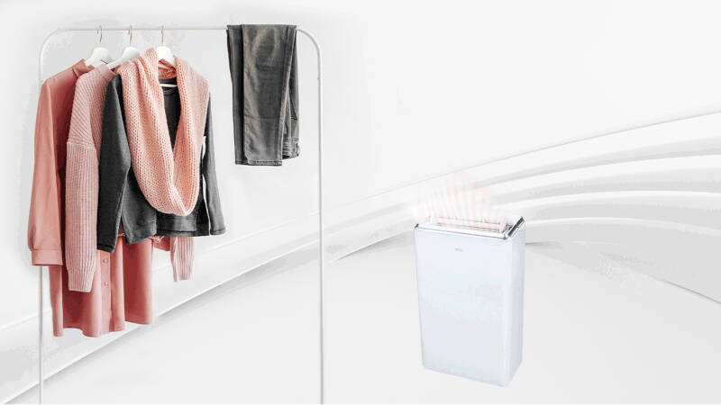 | Hainele se usucă mai repede Cea mai interesantă funcție a dezumidificatoarelor TCL este ca au inclus un mod specific de uscare a hainelor. Această funcție optimizează viteza de ventilație și capacitatea de dezumidificare pentru a usca hainele. Umiditatea din aer este redusă, rufele se usucă mai repede. |