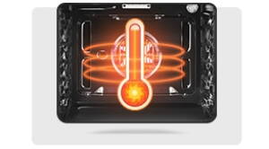 Activeaza, in mod simultan, atat elementele de incalzire superioare si inferioare, cat si ventilatorul situat in spatele cuptorului. Aerul cald va fi distribuit uniform in intreaga suprafata a acestuia, iar reusita retetelor dumneavoastra este sigura! Este cel mai utilizat program de gatit in ceea ce priveste fripturi rumenite si delicioase, prajituri sau lasagna.